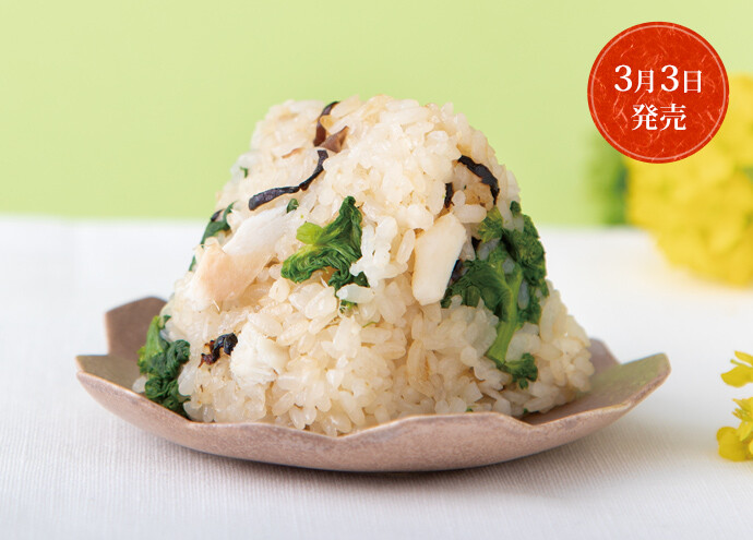 三重県産真鯛と房総産の菜の花で 春を感じる炊き込みおむすび。