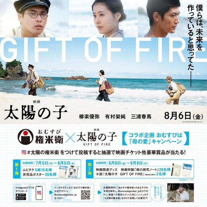 「おむすび権米衛」では、8月6日(金)よりTOHOシネマズ 日比谷、イオンシネマほかで全国公開される『映画 太陽の子』とタイアップし、8月6日より映画の小説や映画特製ノートが当たるインスタ写真投稿キャンペーンを実施いたします。
