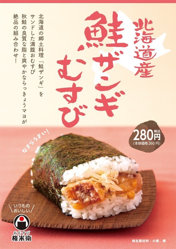 『北海道産鮭ザンギむすび』(280円)ですが、