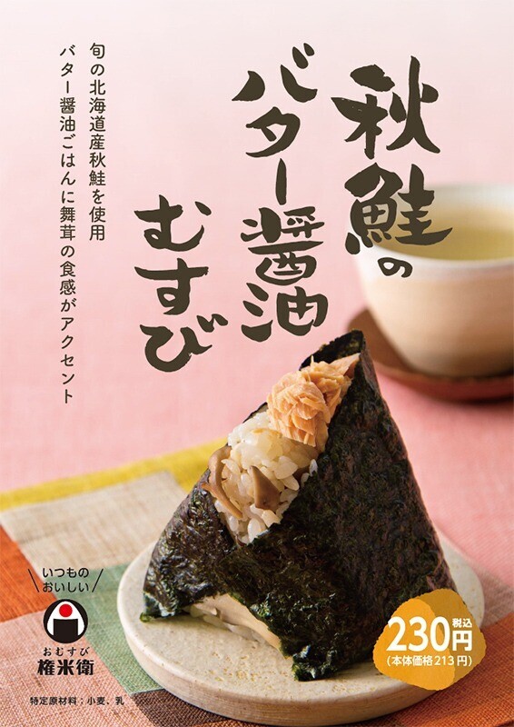 期間限定品「秋鮭のバター醤油むすび」230円(税込)を10月25日(火)より販売致します! 旬の北海道産秋鮭を贅沢に使用。バター醤油ごはんに舞茸の食感がアクセント! 是非、お召し上がりください!