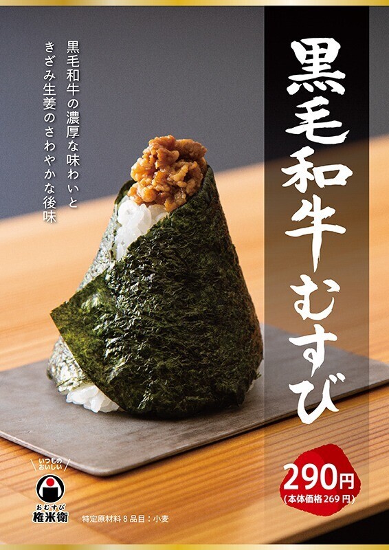 期間限定品「黒毛和牛むすび」(290円)を7月11日(火)より販売いたします! 黒毛和牛の濃厚な味わいときざみ生姜のさわやかな後味。 夏のスタミナおむすび、是非ご賞味ください。