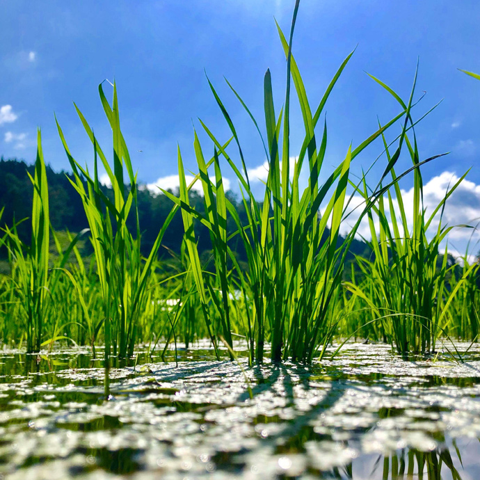 私たちは「肥料を極力与えない」ことを大切にしています。化学肥料は使わず、使うのは堆肥と最低限の有機肥料だけ。窒素肥料を最小限にすることで、お米の味わいや品質の向上につなげるだけでなく、過剰な窒素が河川に流出したり、大気中に気化拡散したりして環境に負荷を与えてしまうことを防いでいます。